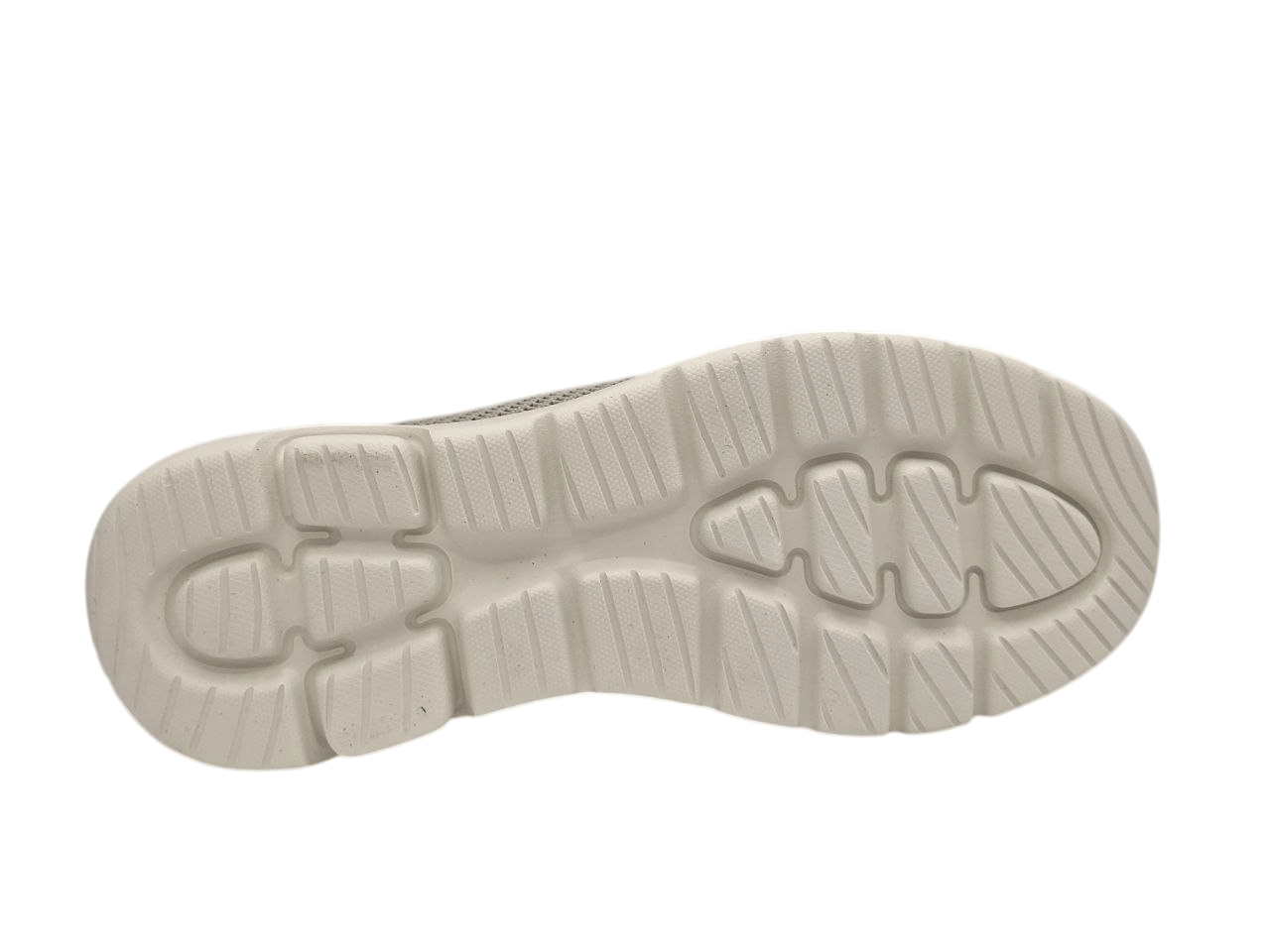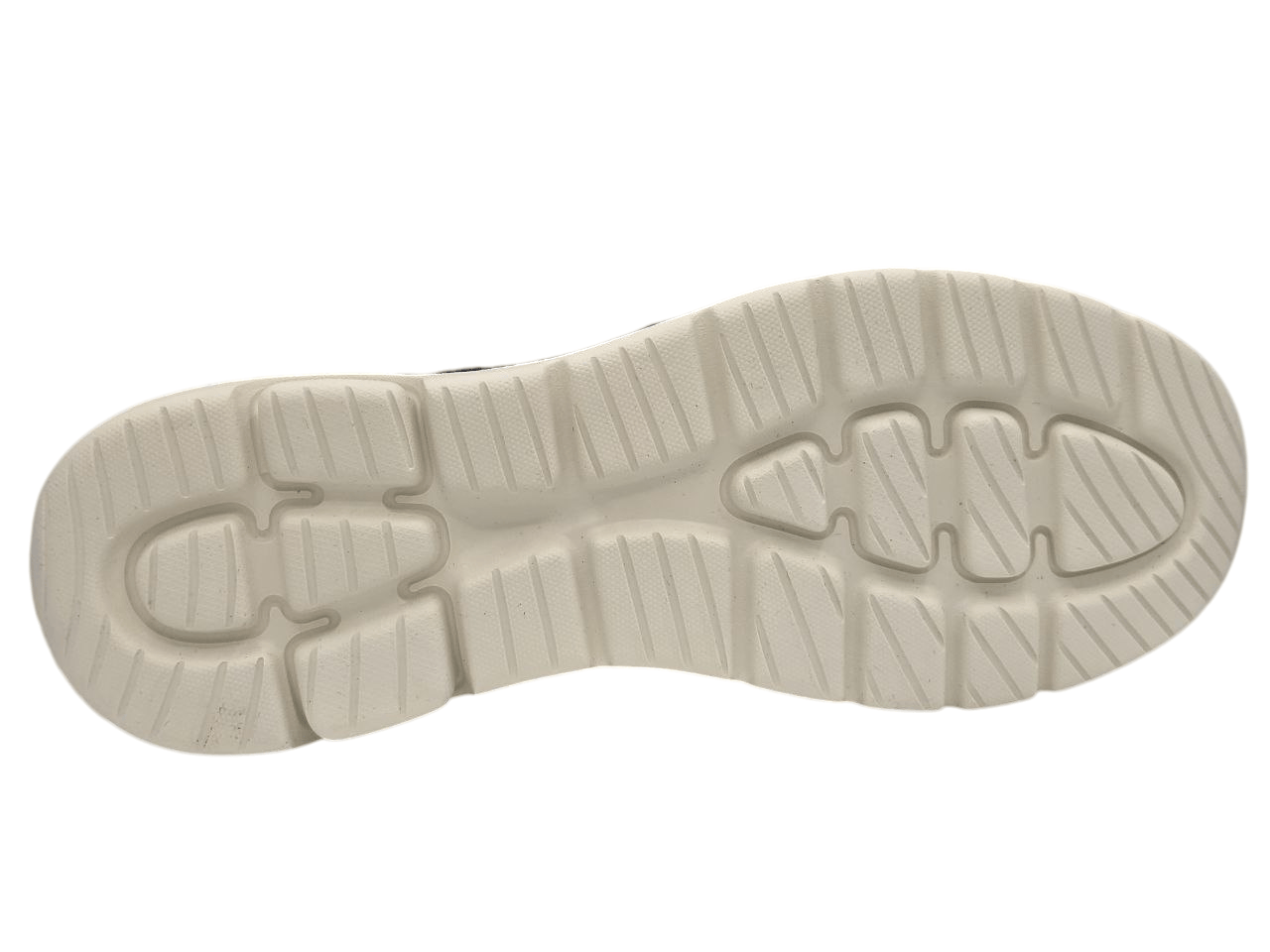 در تصاویر، زیرهی نسبتاً ضخیم و یکپارچه با شیارهای مشخص دیده میشود. این ساختار معمولاً برای پخش بهتر فشار و کاهش ضربههای واردشده از سطح زمین کاربرد دارد. شیارهای زیر کفش هم میتوانند به اصطکاک بهتر کمک کنند تا در مسیرهای معمولی شهری حس مطمئنتری داشته باشید. برای استفاده روزانه، این ترکیب (سبکی + ضربهگیری مناسب) دقیقاً چیزی است که خستگی پا را کمتر میکند.