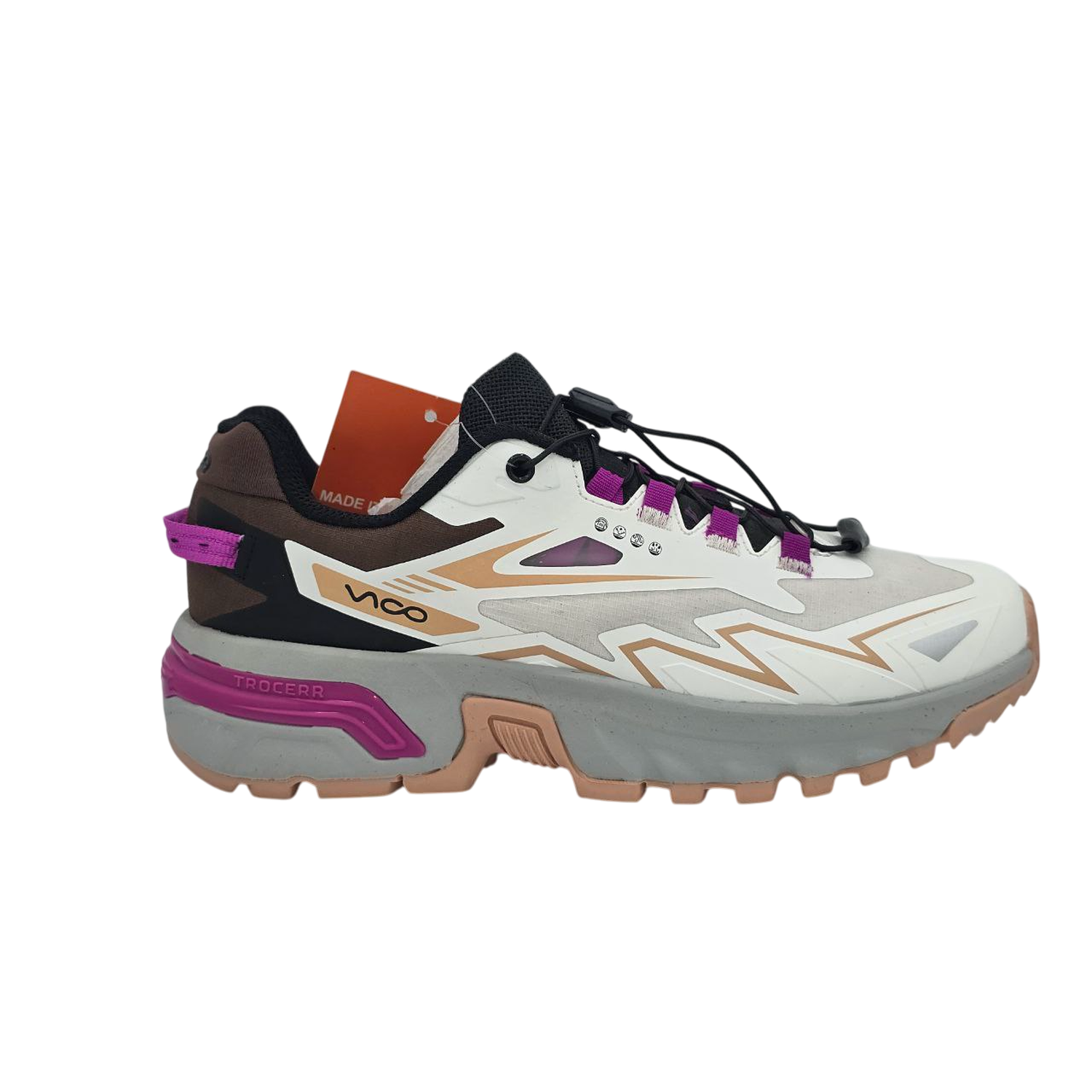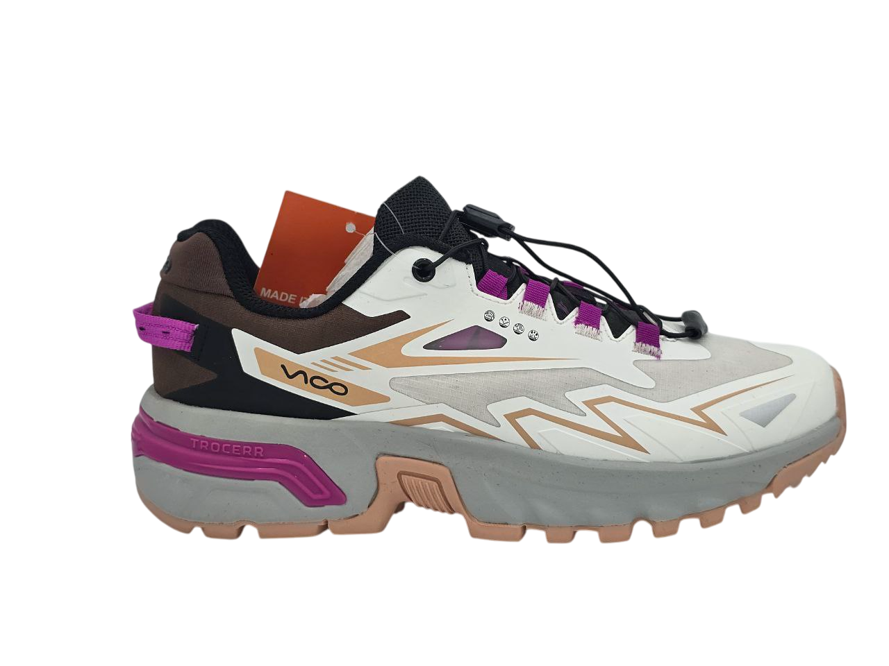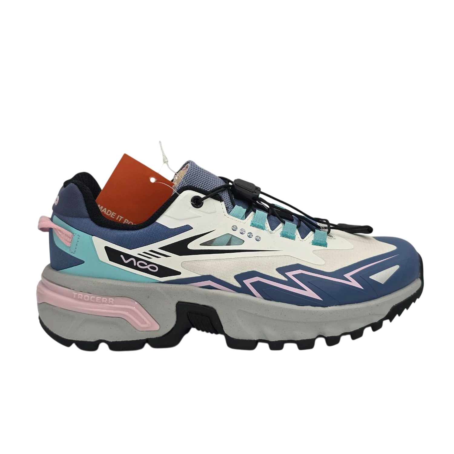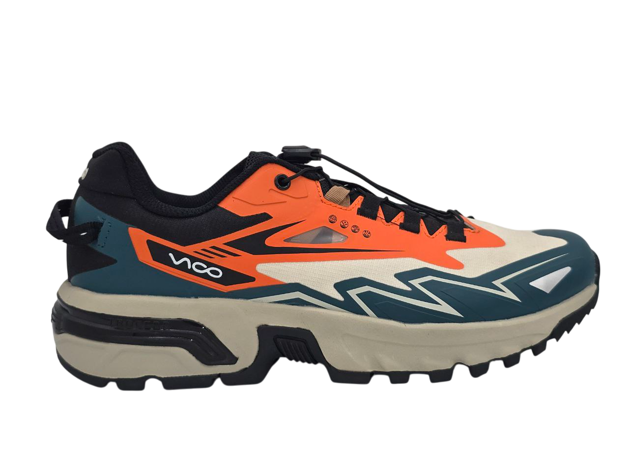 یکی از جذابترین ویژگیهای مدل 4001 ویکو، طراحی گرافیکی و مدرن آن است. خطوط هندسی، رنگبندی جذاب و ترکیب خلاقانهی متریال باعث شده این کتونی در نگاه اول نیز کاملاً متمایز به نظر برسد.