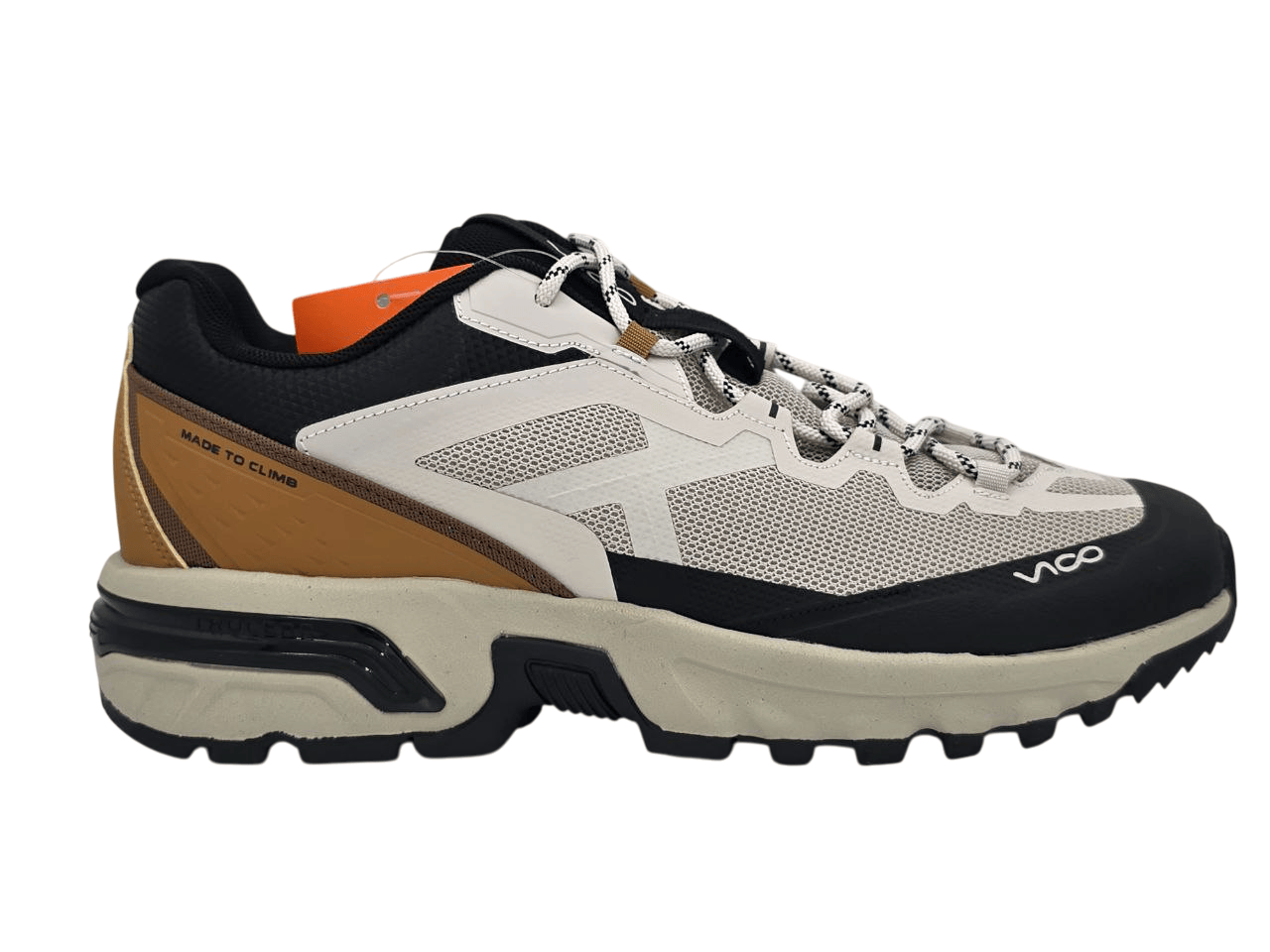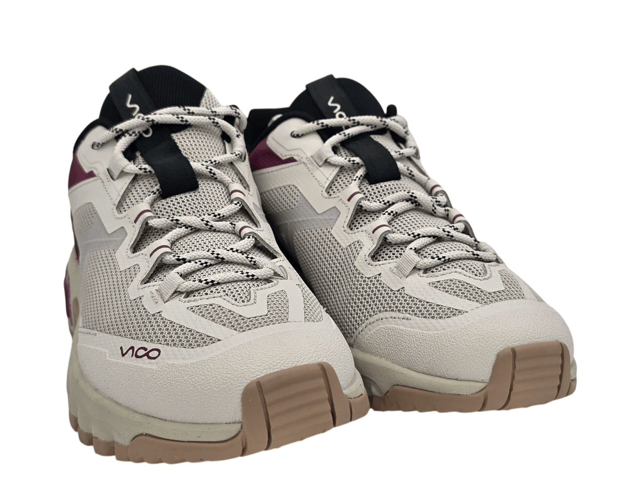 در نگاه اول، حس استحکام و جدیت کفش توجه را جلب میکند. خطوط طراحی، لایهگذاریهای رویه و ترکیب رنگها همه یادآور کفشهای کوهستانی و مسیرهای سخت است، اما ویکو این مدل را طوری ساخته که در عین قدرت، زیبایی و ظرافت خاص خودش را هم داشته باشد.