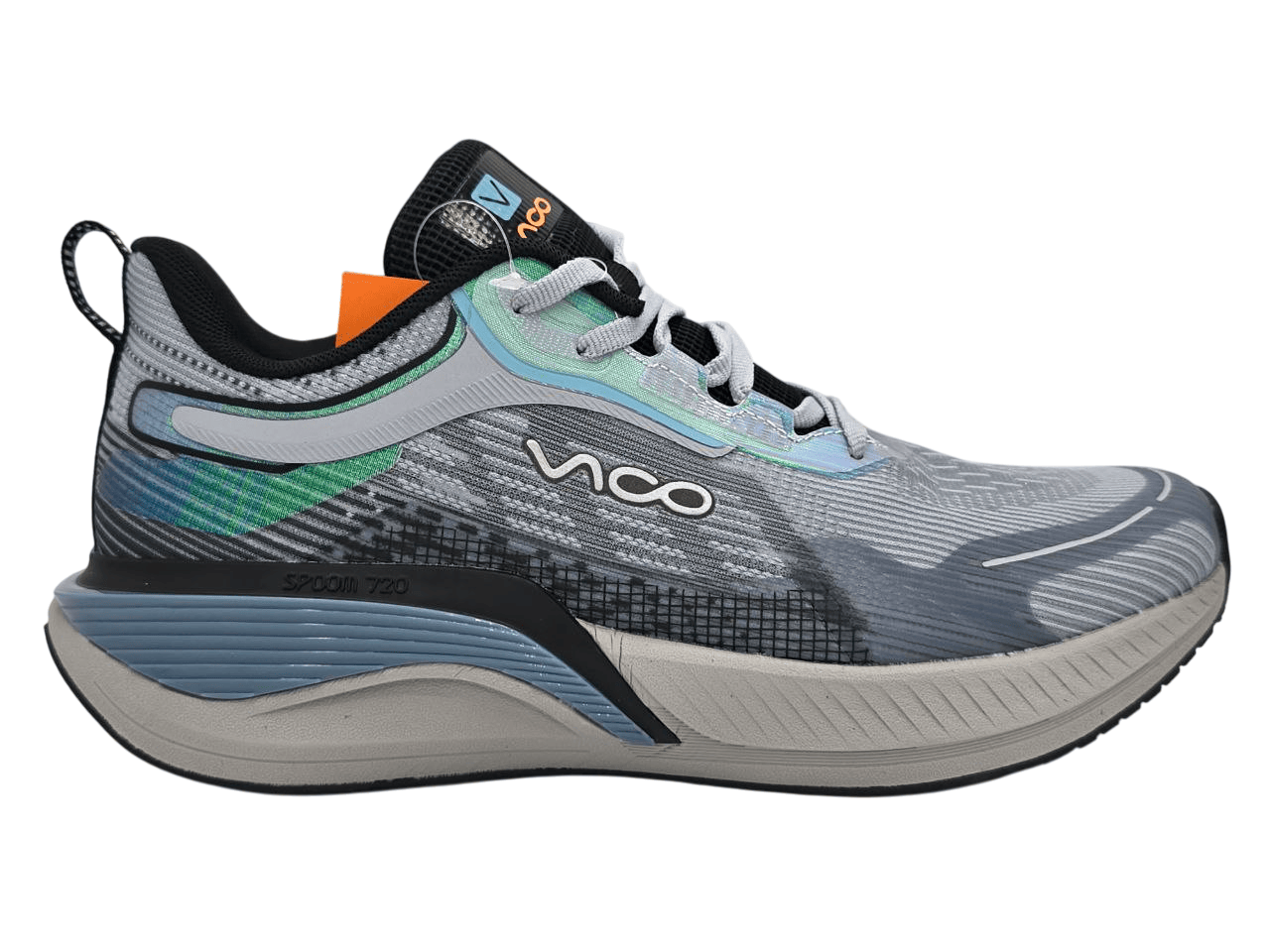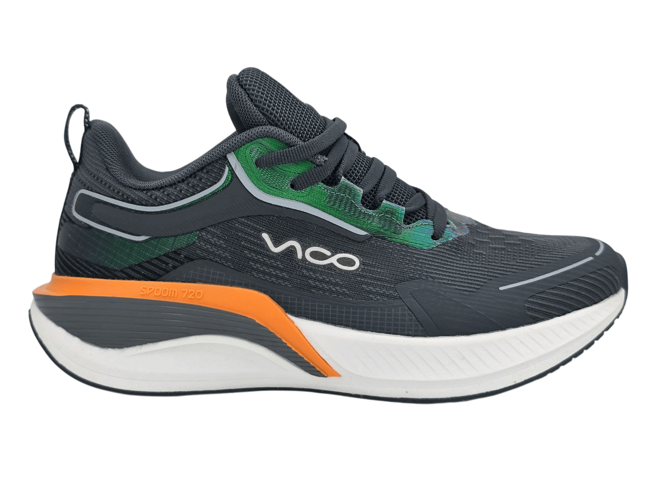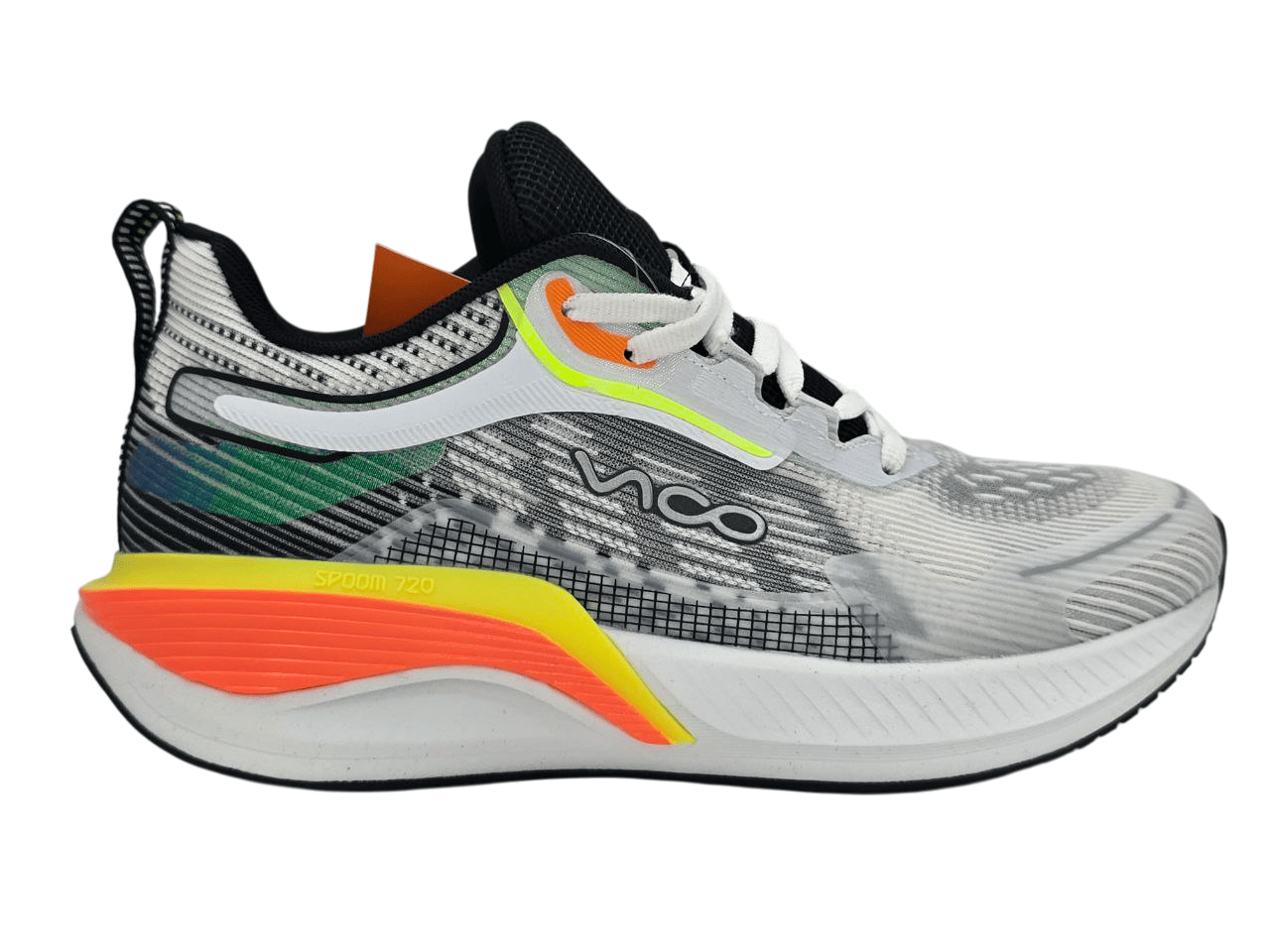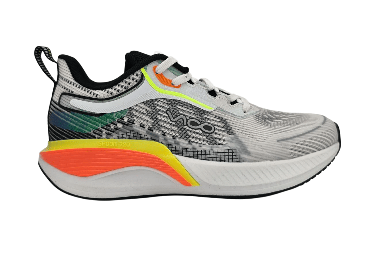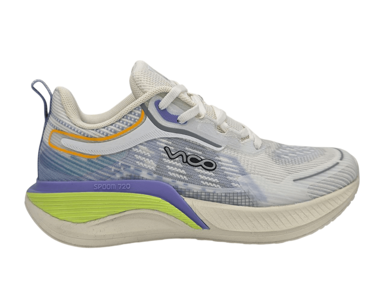 در قسمت کناری کفش عبارت SPOOM 720 دیده میشود که نشاندهندهی تکنولوژی استفادهشده در ساخت زیره است. این نوع زیره از جنس EVA تقویتشده تولید شده و مزیتهای زیر را فراهم میکند: